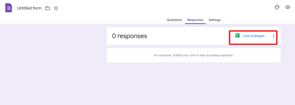 To do this, open your Google Form, go to the Responses tab, and click the green Sheets icon.
