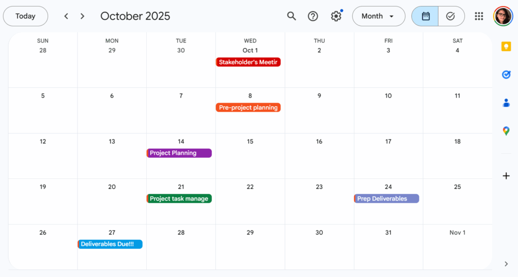 Deadlines disappear when they stay in a spreadsheet. That’s what calendar tools are for, and Google Calendar is one of the best.
