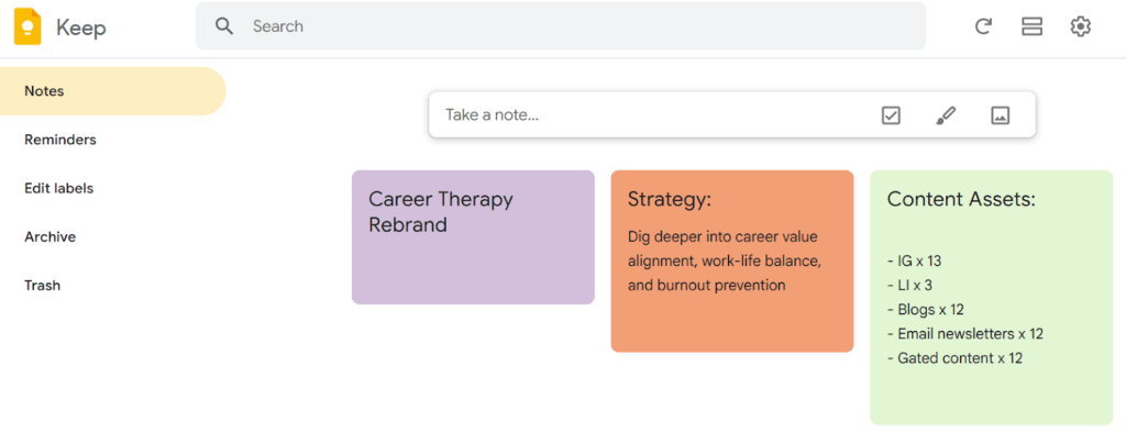 During a project kickoff call, I’ll jot down quick action items in Keep, then link each note to the project’s Sheet or Doc. The notes stay front and center while the files stay organized.