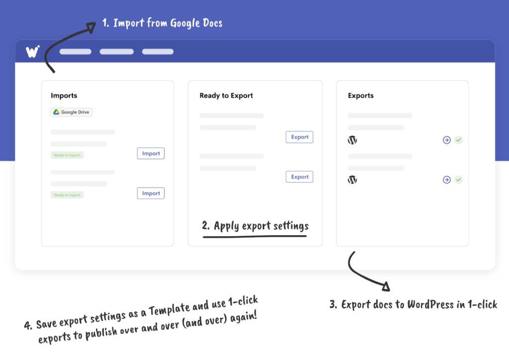 You do the hard work writing your content. Automate your Google Docs to WordPress publishing today.