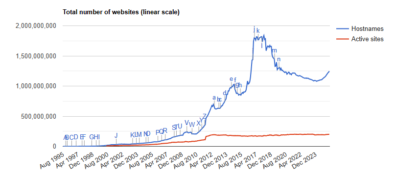 According to the most recent Web Server Survey by Netcraft, there were almost 1.25 billion websites on the Internet in June 2025, of which 201 million are live.